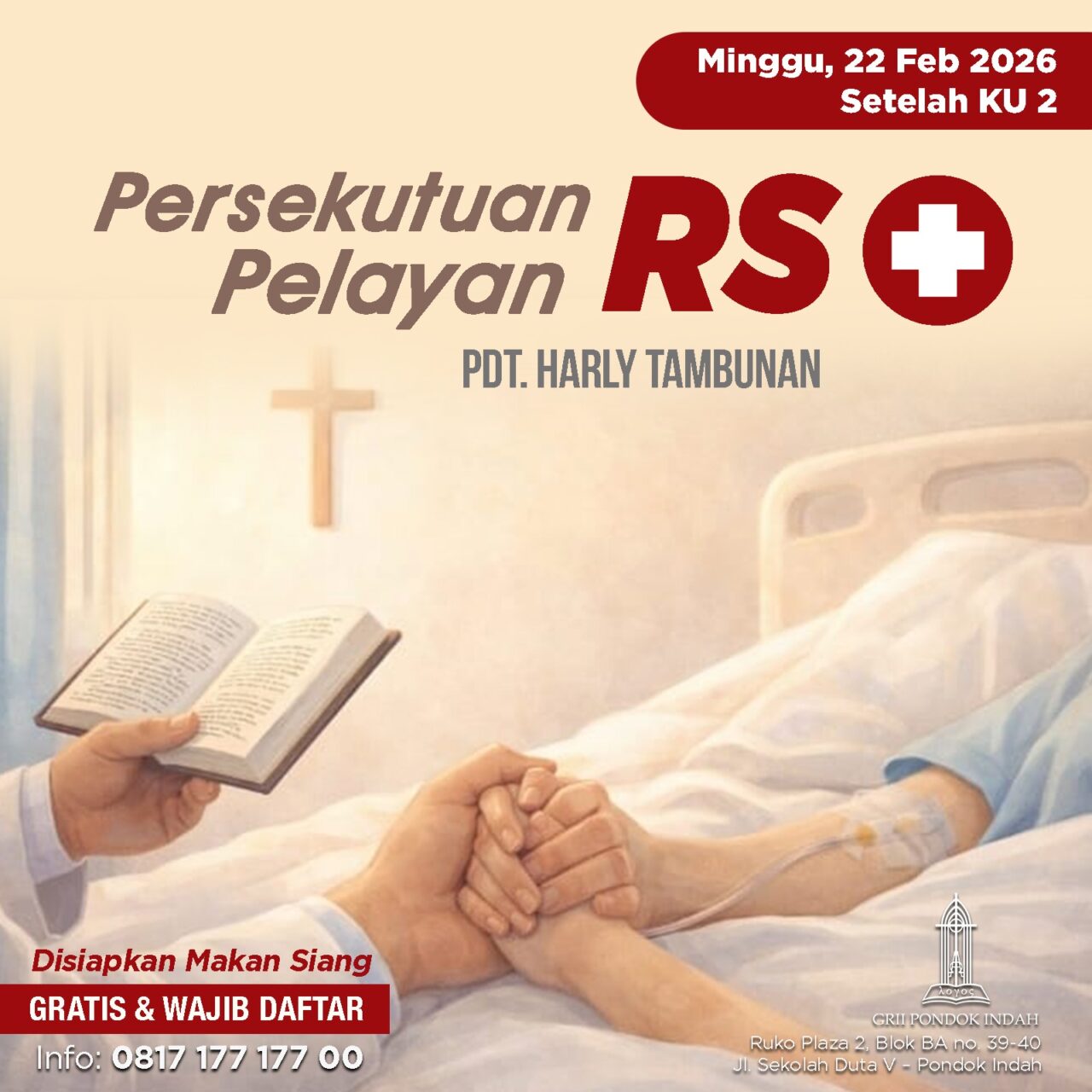 PERSEKUTUAN DOA PAGI - GRII PONDOK INDAH Setiap Sabtu, pk. 07.00 - 08.00 WIB Aula lantai 2 GRII Pondok Indah